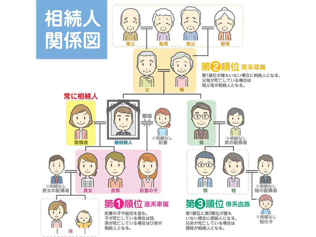 基本的には、配偶者は常に相続人となり、それに加えて子どもや両親、兄弟姉妹などが順位に応じて相続人になります。また、相続関係が複雑な場合や、認知された子ども、養子などが関係するケースでは、判断に専門的な知識が必要です。特定の人物に相続を希望する場合などは、遺言書の作成がおすすめです。